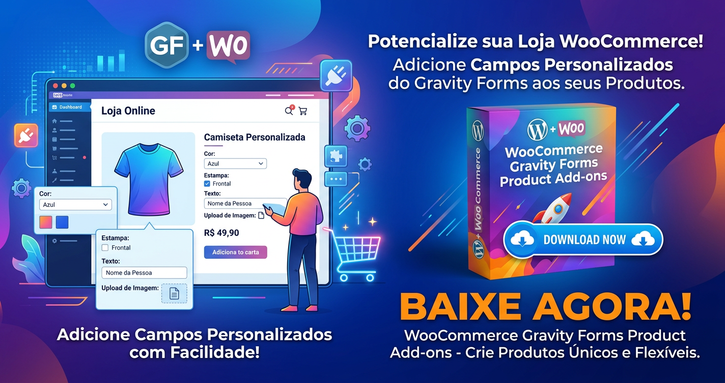 Prepare-se para ver suas taxas de satisfação subirem e seu suporte ao cliente ficar muito mais ágil. O WooCommerce Gravity Forms Product Add-ons não é apenas um plugin; é o motor de vendas que vai transformar seus produtos genéricos em experiências únicas para seus clientes.
